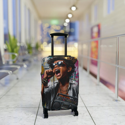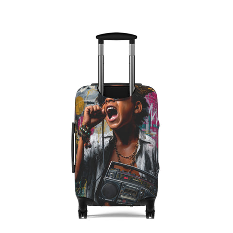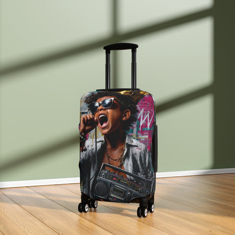Retro Street Music Luggage Cover — Singing Teen with Boombox Travel Protector