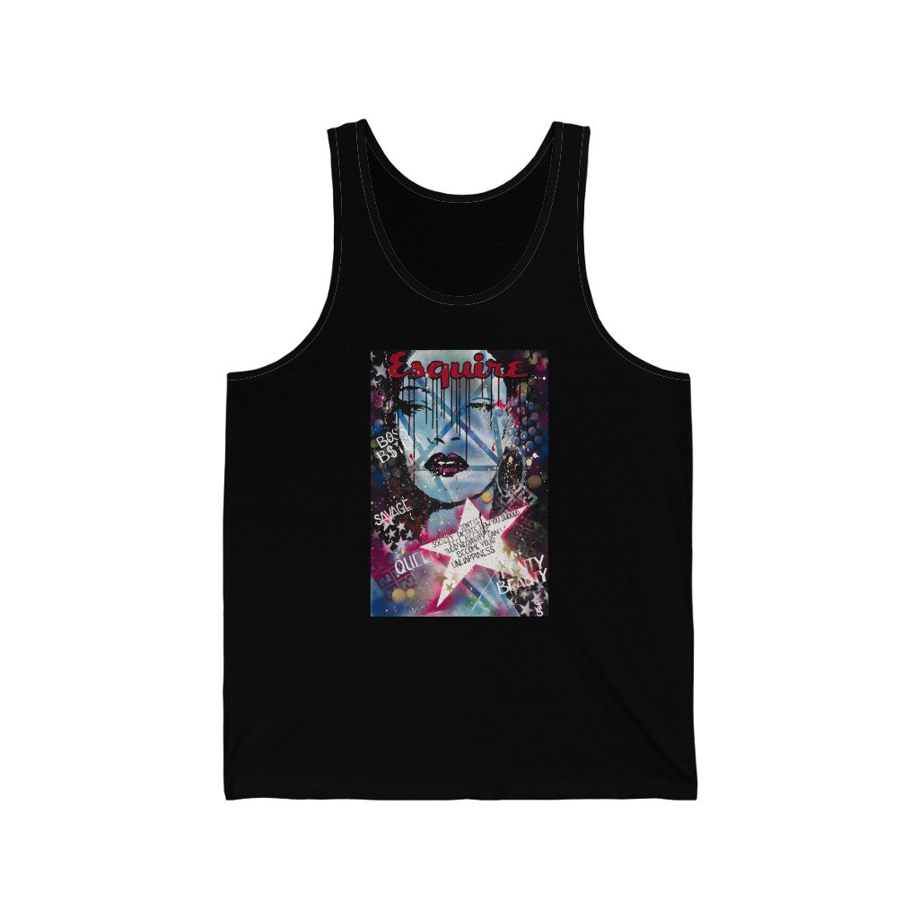 This must-have unisex jersey tank top fits like a well-loved favorite. High quality print makes it an ultimate statement shirt for years to come. This item has side seams to provide structural support. All bindings are the same fabric as the rest of the tank. Depending on the color, cotton, polyester, or rayon can appear.
